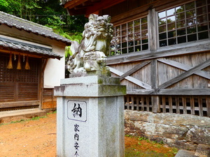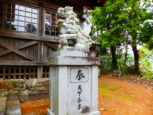 阿形の獅子像。「天下泰平」丸い玉を転がしています。