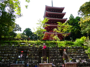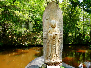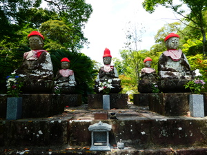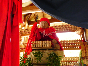 1つだけ願い事を叶えてくれる一言地蔵。「願い事は1つだけですよ〜」ガイドさんの大声が聞こえてきました。