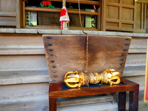 大師堂には弘法大師像とつながっているお手綱がありました。大五鈷をなでて、お大師様を身近に感じます。