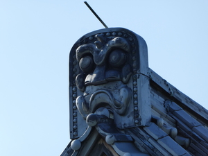 縦に2本角がある珍しい鬼面文鬼瓦が見えました。