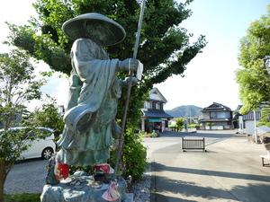 先を急ぐような修行大師像。来た時にはあったアイスクリンの店ももうありません。